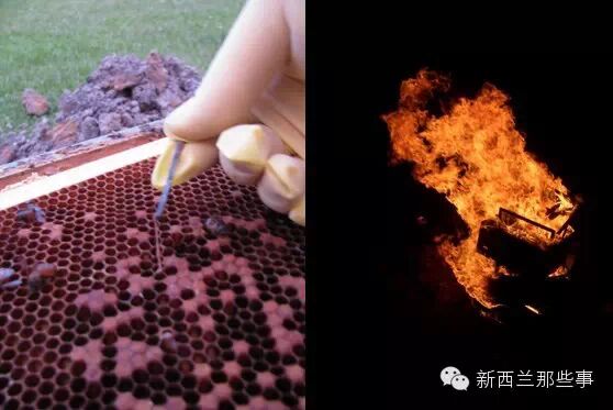 烧蜂巢的养蜂人说:“Here's what happened to me early last season.I didn't have many hives at the time, and ended up burning 4 of them, all new gear just made a few months before.Really upset me。But the thing with burning - this year, done, dusted, all remaining bees safe, no worries.”